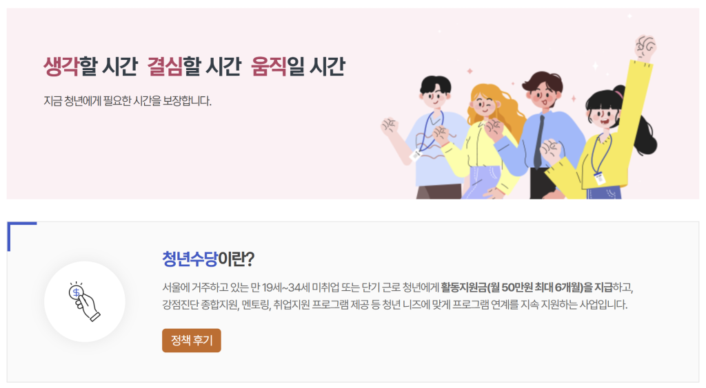청년이 받을 수 있는 혜택 중 가장 큰 혜택 중 하나인 서울시 청년수당, 신청 기간 내 빠짐없이 신청하고 서류를 정확하게 제출해, 월 50만 원의 소중한 지원금을 받아보시기 바랍니다.