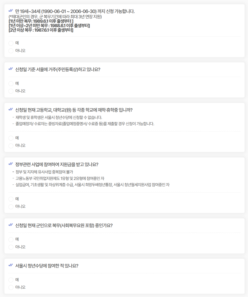 | 본인 연령 및 서울 거주 여부 | ☐ |